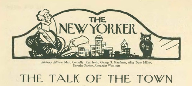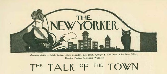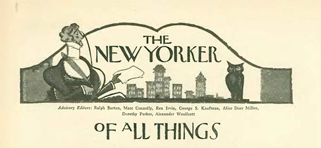 Above is how it looked in the very first issue, February 21, 1925, with Of All Things beneath Rea Irvin’s design. The Talk of The Town was elsewhere in the issue, but would soon find a better fit…