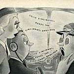 Richard Taylor (self portrait above from Meet the Artist) Born in Fort William, Ontario, Sept. 18, 1902. Died in 1970. New Yorker work: 1935 -1967. Collections: The Better Taylors ( Random House, 1944, and a reprint edition by World Publishing, 1945), Richard Taylor’s Wrong Bag (Simon & Schuster, 1961). Taylor also authored Introduction to Cartooning ( Watson -Guptill, 1947). From Taylor’s introduction: the “book is not intended to be a ‘course in cartooning’…instead, it attempts to outline a plan of study — something to be kept at the elbow to steer by.”