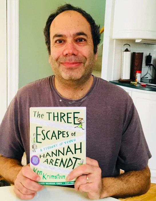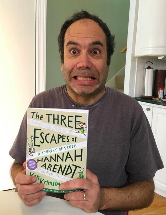 Krimstein’s New Book…Here’s New Yorker cartoonist Ken Krimstein holding a galley of his forthcoming graphic biography, The Three Escapes of Hannah Arendt: A Tyranny of Truth. Photos by Alex Sinclair. The book is due this September, published by Bloomsbury. Mr. Krimstein’s previous book was Kvetch As Kvetch Can. More info here on the publisher’s website.