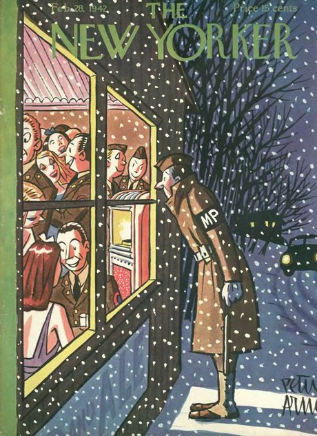 The New Yorker War Album, published in 1942, was the very first themed Album of the magazine’s cartoons. Peter Arno’s cover from the issue of February 28, 1942 was selected as the cover. As so often the case for the Album series an Arno drawing led off the collection (“Of course if they don’t bomb Sutton Place, I’m going to look like a damn fool.”).