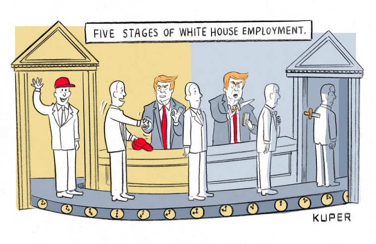 The “Five Stages” popped into my head thinking about how Trump was turning on even his closest supporters like Jeff Sessions. The timing was dumb luck given within the week Priebus and Scaramucci were booted. Since I’m interested in sequential art, doing this as a series of images was a nice fit.