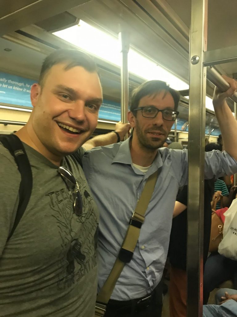 What’re the odds? Left Coaster, Lars Kenseth (on the left) ran into fellow New Yorker cartoonist, Ben Schwartz on the A Train yesterday.