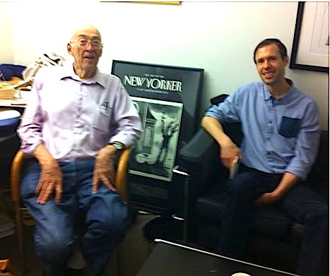 Booth:WalshLiza Donnelly took this great photo of George Booth and Liam Walsh as they sat in the Cartoonists Lounge at The New Yorker today. A framed Charles Addams print lurks in the background.