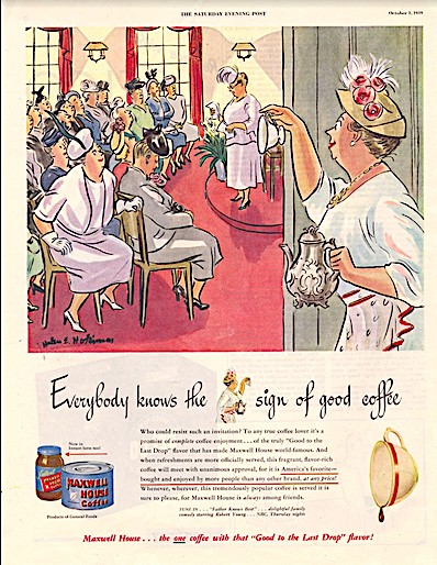The Spill is grateful to Warren Bernard for providing his entire collection of ads by New Yorker cartoonists, including the three by Ms. Hokinson shown here.