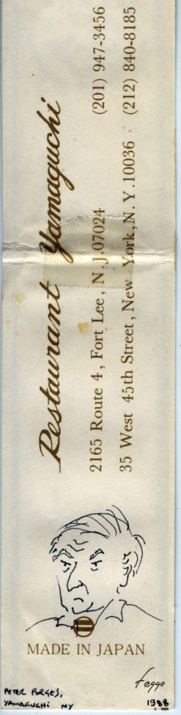 Left: a Felipe Galindo sketch of Peter Porges at a cartoonist gathering in 1988