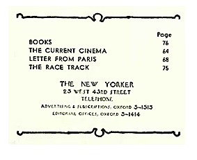 The Table of Contents back then looked like this (readers were left on their own to identify the cartoonists and the contributors to the Talk of The Town):