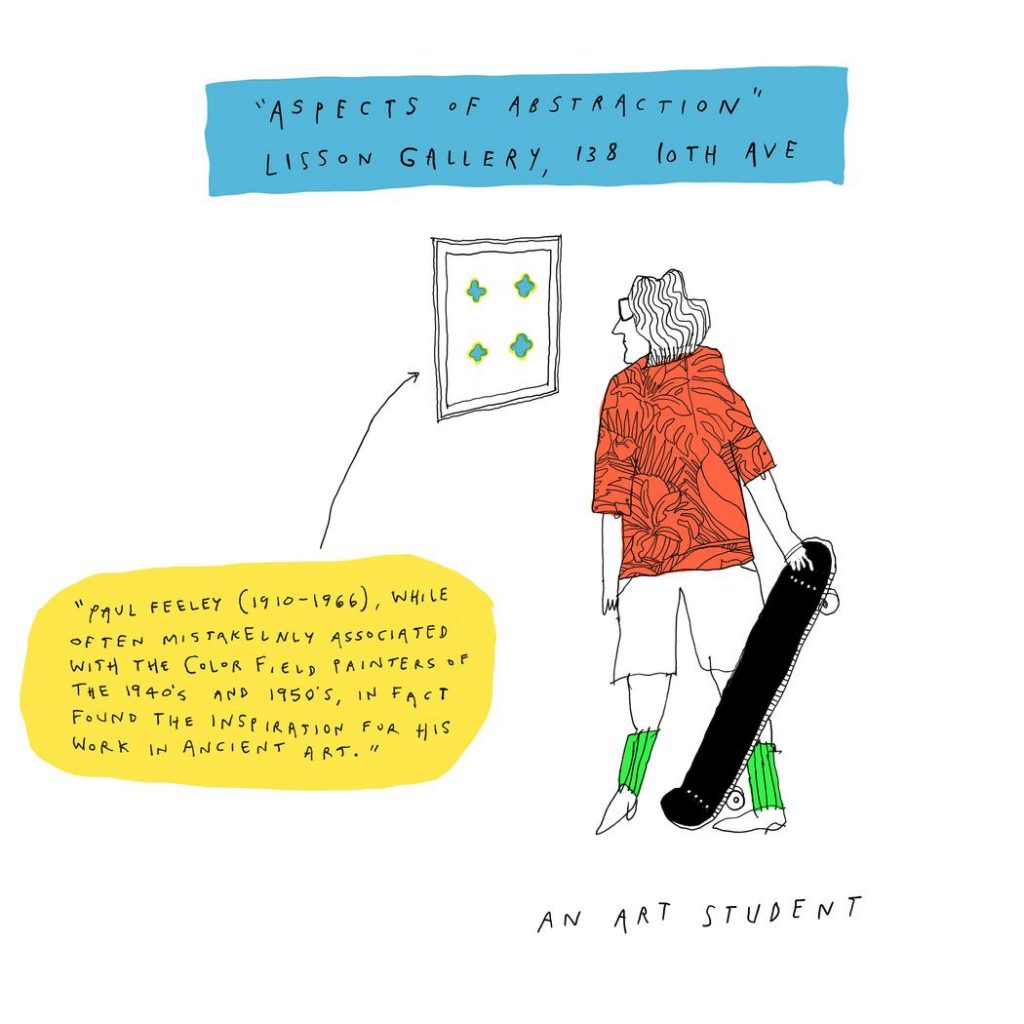 From Vice, June 28, 2017, “Finck Different” —  Ms. Finck’s graphic report about her visits to  a number of New York City galleries on a Thursday night.