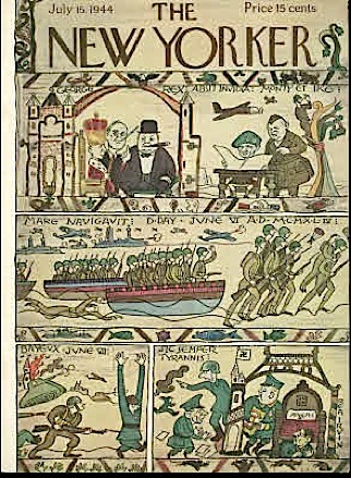 Paging through the years and all those magnificent covers, it wasn’t until July 15, 1944 that another cover with a specific person (in this case it’s persons) presented itself. The subject matter: D-Day. Besides President Roosevelt, Winston Churchill, General Eisenhower and Field Marshal Montgomery, there again was Hitler. The artist: Rea Irvin.