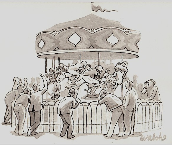 A very good week for New Yorker cartoonists who have been working on book projects. Earlier this week it was reported that Bob Eckstein sold a book based on his bookstore series in The New Yorker, and today from the Publishers Weekly Rights Report news that Liam Walsh has sold a picture book, Fish. It’s expected in bookstores Fall 2016. [left: an unpublished drawing from Mr. Walsh’s website]