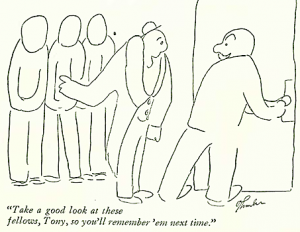 From newyorker.com’s Daily Shouts, April 7, 2017, Liana Finck’s “Rage Poses” — Ms. Finck’s work sometimes reminds me, in a very good way, of the earliest New Yorker Thurber drawings.Below, on the left is Thurber’s very first drawing in the magazine, January 31, 1931, and on the right, one of his illustrations from the 1929 book he co-wrote with E.B. White, Is Sex Necessary?
