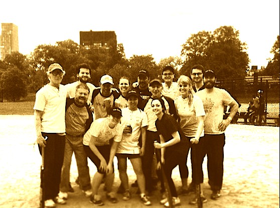 The team has been an odd assemblage that shows up in Central Park every Tuesday at 7pm in the summer months. It’s been made up of two distinct groups: the first, very large, composed of maybe two-dozen Twenty-Something writers, fact-checkers, etc., full of enthusiasm and team spirit, many of whom, however, possessing little knowledge of the rules of the game or an ability to run, throw or hit a ball with a bat; and the second group, much smaller, comprising “the old guys,” meaning anybody over 30, who knew the game and could play it pretty well.