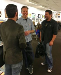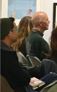 Above, left – right: George Booth; Jeremy Nguyen (hat, green glasses), David Borchart (green sweater); Bob Eckstein (with pen & paper).