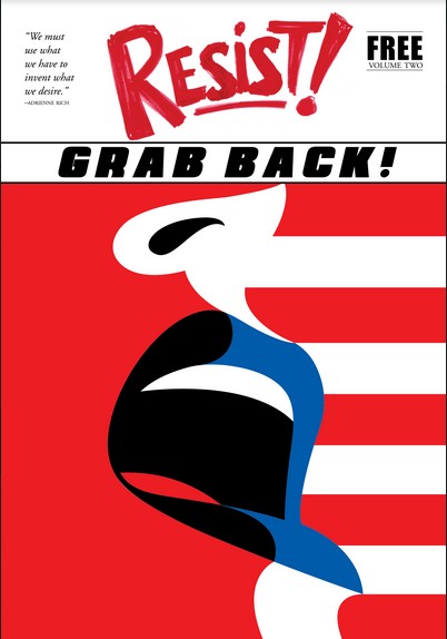 The second issue of Resist!, a free “political comics zine of mostly female artists” (a “Man Cave” section is included) edited by Nadja Spiegelman and The New Yorker‘s art editor, Francoise Mouly, will be distributed this coming July 4th in comic book stores and out on the streets by volunteers (approximately 60,000 copies of the first Resist! were distributed this past January).