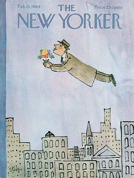 A few days ago I took a look at Charles Addams’s original cover for Brendan Gill’s Here At The New Yorker (Random House, 1975). Today I’m adding the 1990 edition of that book to the Spill’s New Yorker Cartoonists Library. This edition, published in the UK by Heinemann, features a William Steig cover originally published by the New Yorker, February 14, 1964.
